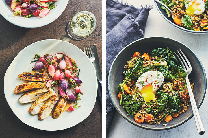 2. Bols de lentilles, quinoa, tatsoï et œuf poché