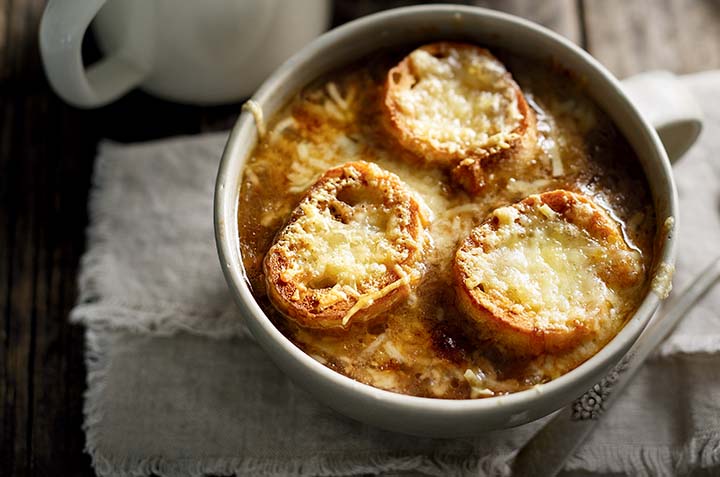 Onion broth, crispy croutons and melted cheese practically make this soup a complete meal.
